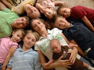 With eight of her nine children, Peggy Bach holds her newest child, Israel Bach,1 week old. Others are from the baby, clockwise, Andrew Bach, Grace Fisher, Arik Bach, Amber Hurley, Faith Fisher, Jake Bach and Bruce Bach. DON BURK/The Times-Union