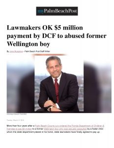 March 15th, 2018   Comments Off on Florida Legislature Approves Claims Bill for Child Sexually Abused by Foster Boy Living in the Home   Abuse, Court Cases, Department of Children & Families (DCF)
